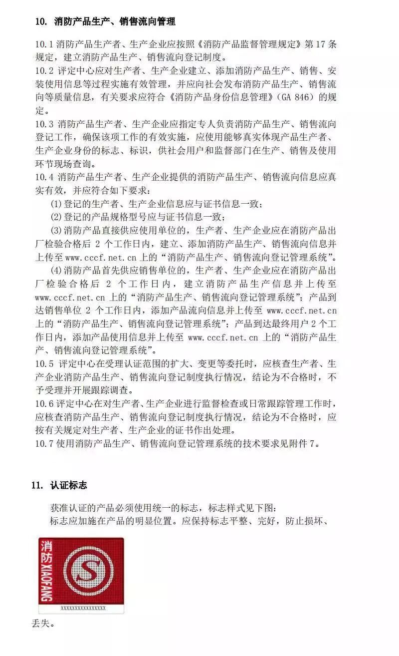 《消防产品身份信息管理》GA 846 规定: